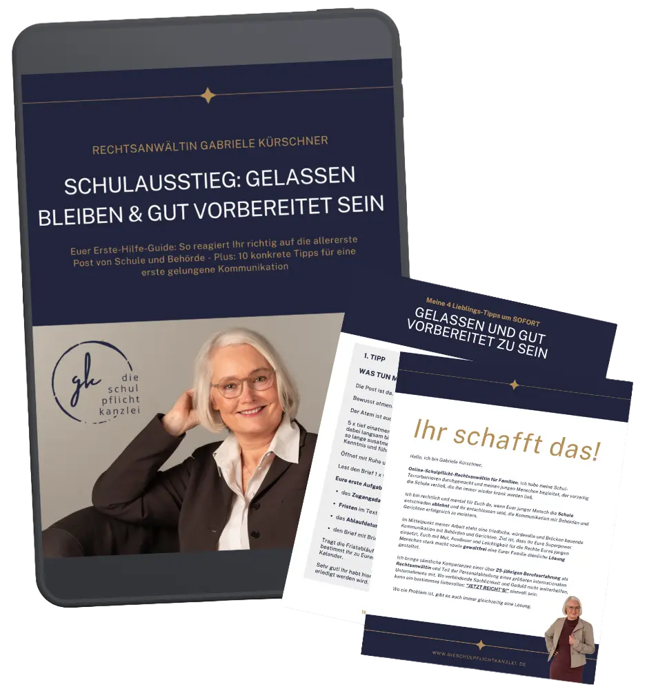 Die legalen Wege aus dem Dilemma könnt Ihr entwickeln und gehen! Dafür ist es erforderlich, dass Ihr fest entschlossen seid, jetzt Euer Kind eigenverantwortlich und selbstbewusst dabei zu unterstützen, für sich einzustehen, mit den Konsequenzen, die das mit sich bringen kann. Ich begleite Euch, mit rechtlicher und mentaler Expertise, mit meinem eigenen Erfahrungsschatz und mit einem tiefen Verständnis für das, was Ihr gerade durchmacht.